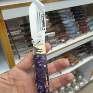 داس دو لب کوچک بابا تیغه فولاد خالص آب دیده و رنگ لیزری و کوره ای ضدزنگ وبا غلاف چرمی