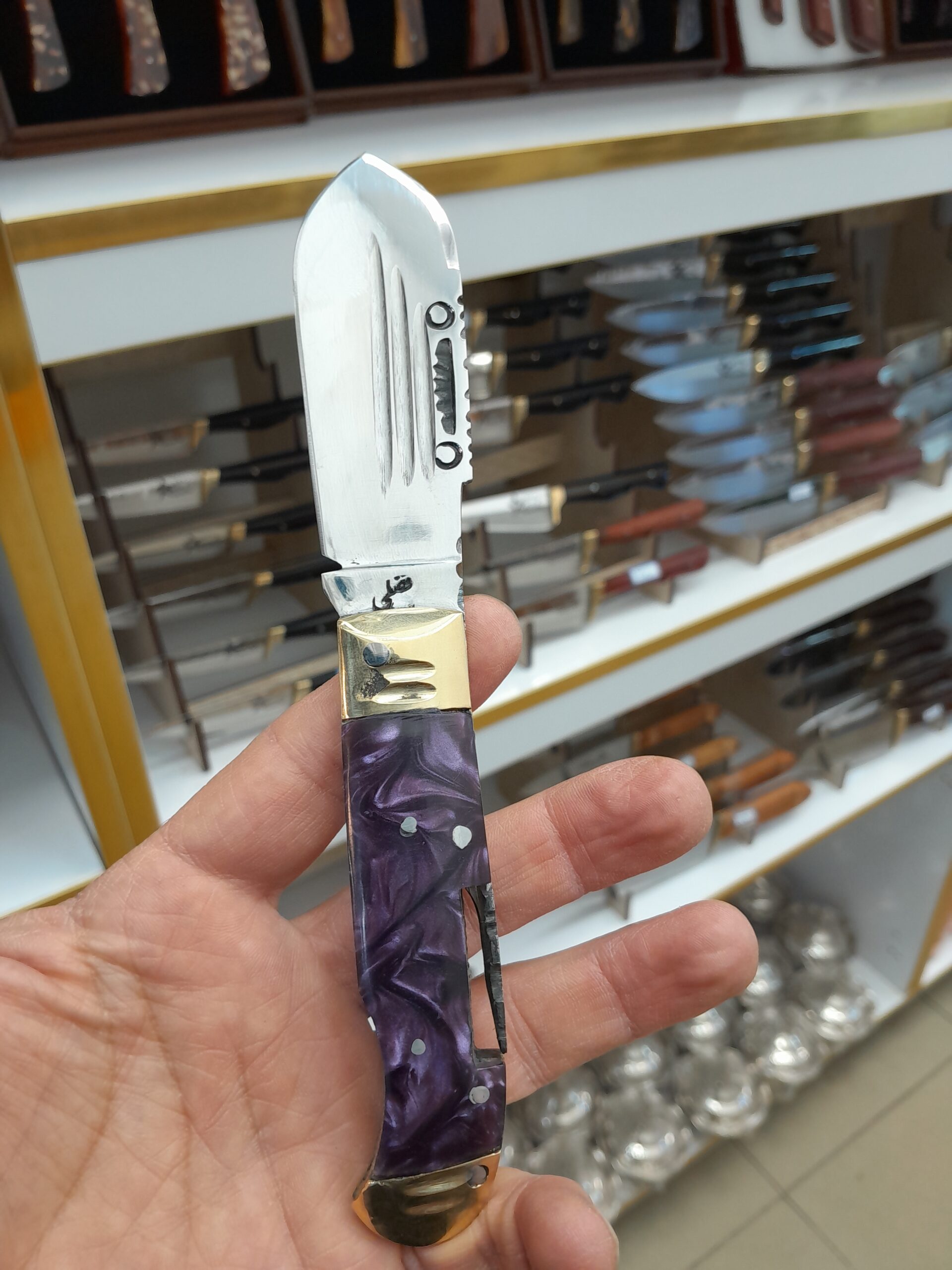 چاقو جیبی ضامندار فضلی با تیغه استیل خالص و دسته فیبر درجه۱ آلمانی