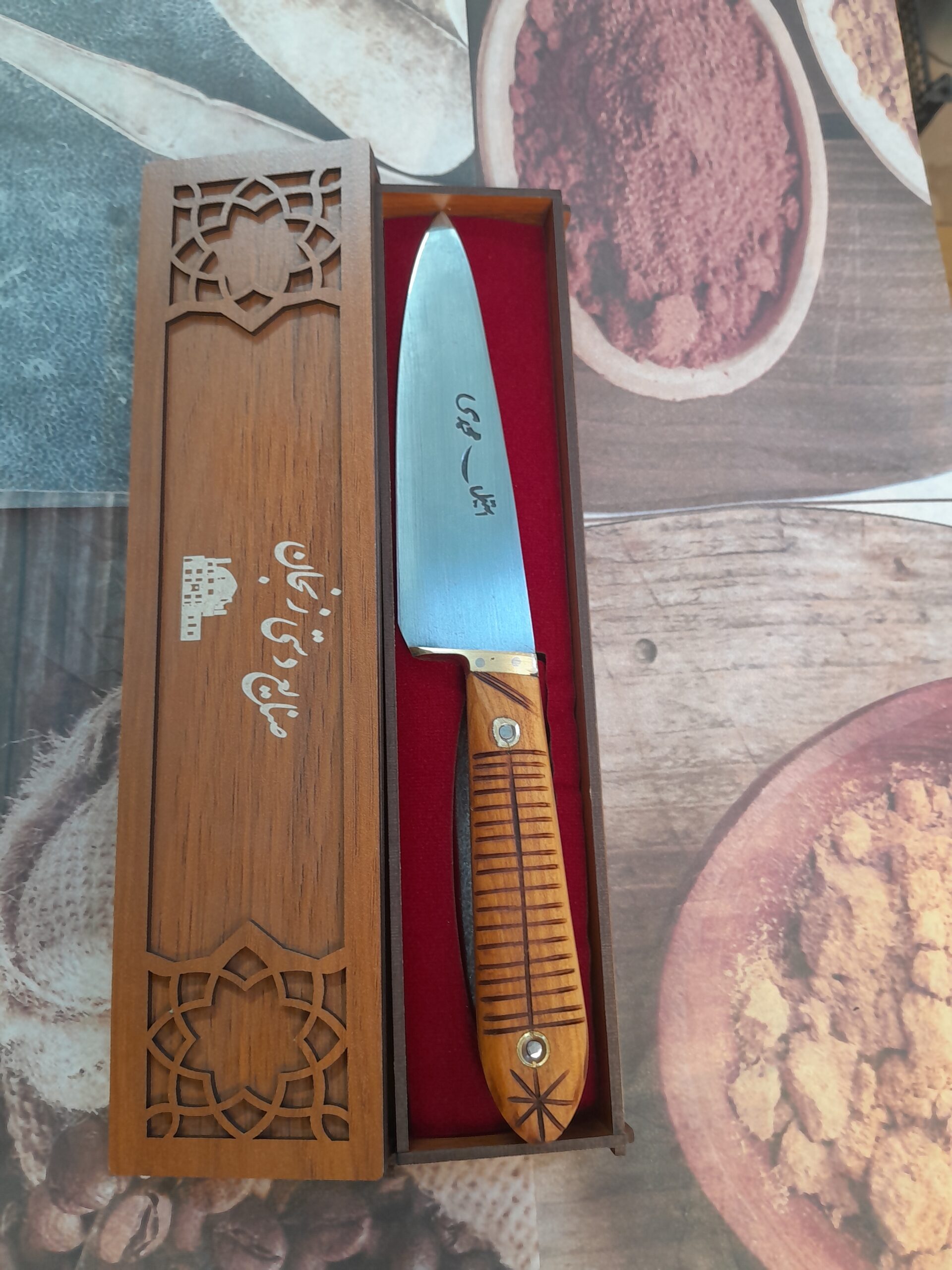 چاقو دم دستی دست ساز محمدی با تیغه استیل فولاد بسیار مقاوم ودسته چوب روس محکم ضدآب