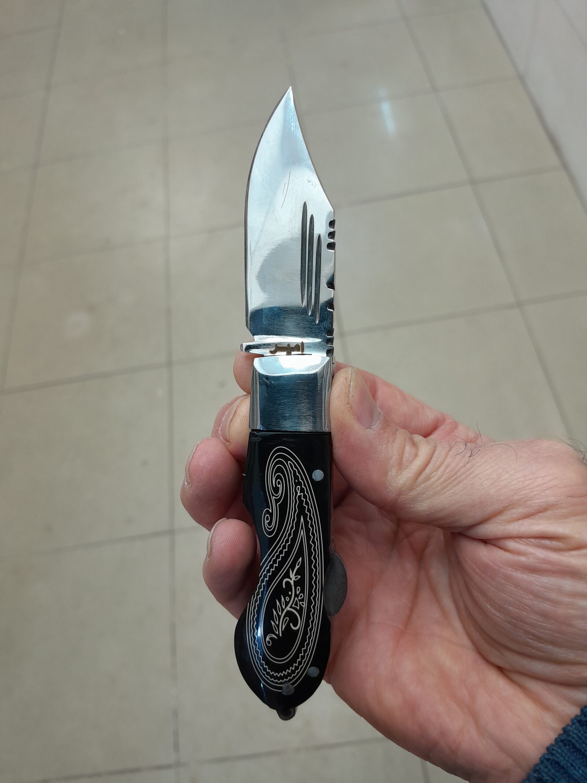 چاقو فشاری بابا دارای تیغه فولاد ی و دسته فیبر درجه۱